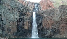 Красные камни — горное ущелье, популярное место отдыха жителей Норильска. Находится в шести километрах восточнее Талнаха. Ущелье Красные камни расположено в горном массиве Хараелах. Оно образовано двумя безымянными вершинами, обозначенными на карте только высотами: 578,9 м и 615,1 м. Западнее этих двух гор расположена гора Отдельная, где находится горнолыжная база. Красные камни — одно из самых популярных мест отдыха норильчан. Людей привлекает знаменитый водопад, падающий двумя каскадами в чистейшее озеро глубиной до девяти метров, и горы характерного красно-коричневого оттенка, из-за которых ущелье и получило своё название. Естественный скальный рельеф (высота гор в этом районе 500—600 метров) идеален для занятий скалолазов и туристов.