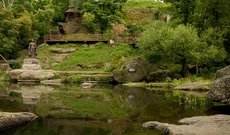 Купальня княгини Ольги - главная природная достопримечательность города Коростень. Это - красивая россыпь гранитных валунов по относительно неглубокой речке Уж. Легенда гласит, что после своего крещения в 957 году в Царьграде княгиня Ольга поселилась в Искоростене и возвела там первую на Руси христианскую церковь (получается, эта церковь была построена еще до крещения Руси). Ольгинская церковь расположена рядом с центральным городским парком, и недалеко от нее, под кручей недоступных скал, Ольга облюбовала место для купания.Это было каменное русло со струями хрустально чистой воды. Сегодня на одном из камней установлена табличка с надписью, свидетельствующая, что именно здесь была купальня княгини. Неподалеку, метров за двадцать - сама скала, под которой находятся давние подземелья со многими входами и выходами. Вероятно, эти пещеры сделали жители городища как тайники от врагов.