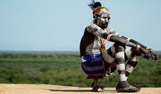 Южная Эфиопия, а особенно долина реки Омо, пожалуй, самая дикая часть страны. Здесь нет цивилизации, дорог, электричества и вообще удобств, без которых не мыслит своей жизни европеец. Здесь есть только природа, в которую вписан человек, который не захотел ее покорять. Именно за дикой, естественной, подчас очень причудливой красотой племен сюда едут туристы. Племя Каро, которое живет в местечке Мурулле, конечно, имеет свои отличительные черты. Их можно узнать по невероятной раскраске всего тела. В ход идет все, чем можно рисовать: глина, краски из овощей и других природных компонентов. Фантазия художников не имеет границ, раскрашенные тела буквально поражают воображение. Как и прически. Особенно мужские. Всем, побывавшим в гостях у Каро, трудно забыть эти стройные тела, покрытые узорами, и невероятную утонченную красоту и грацию, которая присуща этому немногочисленному народу.