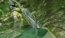 Водопад "Чудо-красотка" - это уникальное место в окружении колхидского леса. "Чудо-красотка" – это название совсем небольшой реки, длина которой - около 10 км, находящейся между поселками Солоники и Волконка. В некоторых местах она образует небольшие водопады. Название свое река получила за воду, отличающуюся чистотой и необычностью цвета, а также за живописность русла. К данному месту ведет подъездная дорога, доступная для всех видов транспорта, а непосредственно к объекту Вас приведет тропа протяженностью около 200 метров. Приехав сюда летом, придется заплатить за посещение, однако не в сезон это место открыто к посещению всем желающим абсолютно бесплатно.