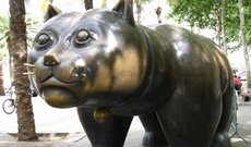 Равальский кот, автором которого является знаменитый скульптор Фернандо Ботеро, был создан им в 1987 году и находится в Барселоне. Это один из самых удивительных памятников котам и кошкам. Бронзовая статуя кота весом 2 тонны имеет гигантские размеры - ее длина - целых 7 метров, а высота - два с половиной метра. Кот сделан в характерном для Ботеро стиле - большие бока и тяжелые лапы, но, несмотря на свои размеры, он весьма обаятелен и привлекает к себе не только детей, но и взрослых. Туристы, приезжающие к статуе кота, обязательно загадывают желание, которое обязательно сбудется, если потереть коту нос.