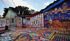 Радужная деревня – яркий пример того, как один человек может изменить жизнь целого поселения. Уроженец Гонконга, ветеран войны в возрасте «хорошо за 80» смог сделать то, что не под силу многим нашим депутатам. Деревенька неподалеку от Тайчжуна изначально была непримечательным населенным пунктом, возникшим как военный городок национальной армии в пятидесятых годах прошлого века. И как многие подобные деревни, место находилось в состоянии перманентного упадка. Сегодня это одна из самых посещаемых туристических зон. Улицы и стены каждого дома деревни покрыты росписью. Несмотря на довольно примитивную технику орнаментов, изображений растений, животных, птиц и знаменитостей, роспись - благодаря своей вездесущности - создает непередаваемое впечатление. Такое чувство, что ты попал в детский рисунок. Яркие цвета, незамысловатые темы – сплошной детский праздник. И все это сделал один человек, который начал разрисовывать свой дом для себя.