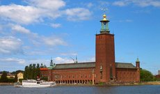 Здание городской ратуши по праву считается одним из самых известных символов Стокгольма. Это место, где ежегодно дают знаменитый обед для лауреатов Нобелевской премии. В 1907 году городским советом Стокгольма был объявлен конкурс на лучший проект здания городской ратуши. Победителем стал Ragnar Ö stberg (Рагнар Эстберг). Строительство длилось 12 лет и было завершено лишь в 1923. В процессе строительства архитектор постоянно менял проект, и в результате в архитектуре здания произошло смешение стилей: основательный, строгий северо-европейский стиль смягчен элементами восточной и венецианской архитектуры (звездочками, статуями, балконами). На строительство здания было израсходовано почти 8 миллионов штук красного кирпича. В Синем зале ратуши проходит ежегодный Нобелевский обед. Зал называется Синим, т.к. по первоначальной задумке архитектора его стены должны были покрыть синей эмалью. В конце концов, Эстберг передумал, а название осталось. Над Синим залом расположен Зал Золотой, и он полностью оправдывает свое название- стены его украшены миллионами кусочков позолоченной смальты. Башня ратуши, монументальное строение высотой 106 метров, украшена тремя позолоченными коронами- символом Швеции. На башне устроена смотровая площадка, подняться на которую можно, преодолев 365 ступеней.