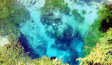 Голубой глаз - так романтично называется водный источник на юге Албании. Кристально чистая вода в роднике переливается голубым цветом, отсюда и название. Сегодня родник в статусе национального парка находится под защитой государства. Чтобы достичь его, нужно несколько километров идти пешком вдоль просёлочной дороги. Цвет воды в "Голубом глазе" невозможно сравнить ни с чем другим, что бы близко напоминало его насыщенный лазурный цвет. Родник пугает не только неизведанной глубиной, но и ледяной водой. Температура воды никогда не превышает 13 градусов, вне зависимости от сезона. "Голубой глаз" питает реку Быстрицу и расположенную всего в паре километров гидроэлектростанцию. В 1 секунду из родника выходит 6 кубических метров прохладной свежей воды. Для тех, кто проголодался во время прогулки, непосредственно возле родника построен уютный ресторан.