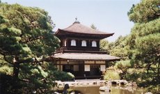 Гинкакудзи представляет собой Серебряный павильон, являющийся одной из величайших сокровищниц Японии. Сад, храм и гора, покрытая густым лесом, у подножия которой расположился Серебряный павильон, составляют единое целое. Серебряный павильон, сооруженный в 1483 году, во время правления сёгуна Ёсимасы Асикаги (1434-1490), - это двухэтажный дворец с четырехскатной крышей, увенчанной бронзовой фигурой Феникса. Широкие выносы карнизов отделяют второй этаж от нижнего. Углы крыши и карнизов слегка приподняты. Верхний этаж опоясан галереей. Два цвета доминируют в облике павильона: многочисленные оттенки коричневого, естественного цвета старого дерева, и белый с голубым отливом - цвет бумаги, которой оклеены решетки узорчатых окон и раздвижных стен. Павильон поражает своей красотой, но не сверкающей, а затаенной, глубинной, восхищает своими мягкими и в то же время четкими очертаниями, повторенными на зеркальной поверхности расположенного рядом озера.