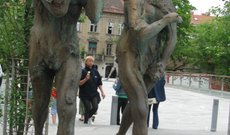 В Любляне есть несколько оригинальных скульптур одного немного сумашедшего скульптора (экскурсовод называла его имя, но, к сожалению, из-за избытка информации оно забылось). Одна из них "Изгнание из рая"