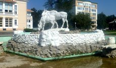 В Рязани лоси пользуются особенным статусом. Хотя наиболее вероятно, что Рязанская область, как и Россия в целом, богата лесами, и поэтому скульптуры лосей являются примером воплощения национальной идеи. Эта скульптура находится у Цирка. Фонтан сейчас не действует