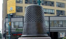 Скульптура наперсток - необыкновенный памятник, построенный в память о швеях, находится в Канаде, Торонто, в бывшем промышленном районе, где раньше были швейные фабрики и мастерские. Сейчас эти бывшие заводы проходят перепланировку и вместо них здесь будут жилые помещения. Идея о такой памяти швеям пришла городскому совету города Торонто, и вскоре появился бронзовый наперсток 9 футов в высоту, расположенный на ряде больших пуговиц разного цвета. Рядом с бронзовым наперстком расположены еще две большие пуговицы и фигуры женщин, сидящих за швейными машинами и старательно исполняющих свои обязанности. Автором такого памятника стал Стивен Круиз.