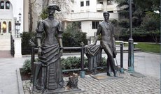 Скульптурная композиция "Антон Чехов и дама с собачкой" в г. Ялта