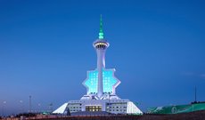 Высочайшее архитектурное строение Туркмении – это Телерадиовещательный центр под названием «Туркменистан». Башня высотой 211 метров является самым высоким зданием всей Туркмении. Строительство началось относительно недавно – в 2008 году. Наверное, поэтому этот сложный объект выглядит потрясающе современно. Турецкая строительная компания «Полимекс» придала ему форму пятиконечной огромной звезды «Огуз-хана», вошедшей в Книгу Гиннесса, что уже само по себе не может не удивлять. Главная функция всего строения – обслуживание и удержание радиокоммуникационных антенн, но, помимо этого, башня выполняет функцию туристического центра. Чего только стоит ресторан, который вращается, расположенный на 29 этаже. Он вобрал в себя несколько элементов национального декора и некоторые тенденции современных стилей в архитектуре. На сегодняшний день башня передает несколько сигналов: радио, цифрового и аналогового телевидения. Многие станции входят в число ее постоянных клиентов. Центр телерадиовещания стал не только туристической достопримечательностью - он по праву является символом всего Ашхабада.