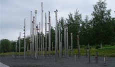 Необычное, можно даже сказать загадочное, Тюбингенское панно расположено на Онежской набережной Петрозаводска на берегу одного из красивейших озер Карелии. Придумали и установили панно германские скульпторы из города-побратима Тюбингена. Удивительно, но даже они не могут толком рассказать, что же подразумевает и символизирует их странный памятник! Тюбенгенское панно представляет собой череду железных мачт, или трубок, взмывающих вверх. В композиции нет ни одной одинаковой трубы. Все они имеют разную форму и высоту, всего же насчитывается 61 элемент. Примечательно и то, что в несколько мачт встроены восемь камней, которые были привезены с разных исторических памятников архитектуры столицы Карелии и самого Тюбингена.