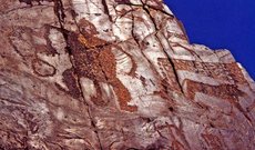 Урочище Сармыш - одно из самых известных в Центральной Азии мест с наскальными изображениями. Оно находится на южном склоне Каратау недалеко от города Навои в Узбекистане. Природа Сармыша отличается многообразием, здесь растет большое количество деревьев, а склоны покрыты зарослями кустарника. Весной ущелье представляет собой удивительное зрелище: везде растут тюльпаны, маки, вокруг - бескрайние просторы зелени. Размер протяженного урочища - 20 квадратных километров. На этой территории на сегодняшний день найдено 10 тысяч петроглифов. Неподалеку от петроглифов расположены могильники и священные места.