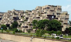 Хабитат 67 - жилой комплекс, являющийся архитектурной достопримечательностью стиля брутализм, а также одним из самых известных и узнаваемых сооружений Монреаля и всей Канады. Проектирование и строительство комплекса началось в 1966 году и было завершено к Всемирной выставке 1967 года. Сооружение представляет собой 354 куба, надстроенных друг на друга, в которых размещено 146 квартир. Основной концепцией Хабитата является предоставление жильцам комплекса всех преимуществ частных домов, при этом приспособив его к плотной застройке городов и сделав экономически целесообразным. В итоге на набережной Монреаля возвышается серое 12-этажное здание неординарной формы, изначально планировавшееся в качестве доступного жилья, однако в результате повышенного спроса цены на жилье в доме оказались далеко не доступными.