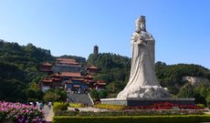 Дворец Наньша Тианху, расположенный на юго-восточном склоне горы Даджиао, является крупнейшим в мире дворцовым комплексом и занимает площадь около 100 гектаров. Дворец был построен во времена династии Мин, но после правления династии Цин был разрушен в первой половине XX века. Он был построен для поклонения Тианху - богине моря, которая, согласно приданиям, помогала людям в кораблекрушениях. Дворец, который мы видим сейчас, был восстановлен в 1996 году. Архитектура комплекса выполнена в традиционном китайском стиле, в красно-синих тонах с золотыми акцентами. В центре дворцовой площади возвышается огромная гранитная статуя богини Тианху, к которой до сих пор приходят моряки, чтобы получить благословение перед дальней дорогой.