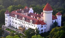Замок Конопиште - последняя резиденция наследника Астро-Венгерского престола Франца-Фердинанда фон Габсбурга, чьё убийство в 1914-ом году дало старт для начала Первой Мировой Войны. Готический замок был построен в 13-ом веке с целью максимальной защиты от возможных осад. В арсенале замка имеются семь башен, ров и земляные валы. Свою первую осаду в 1467-ом году замок мужественно держал 17 месяцев, но был сдан войскам короля Йиржи из Подебрад. Второй раз замок потерпел поражение в 1648-ом году, и был полностью разграблен шведскими войсками. Впоследствии Конопиште ещё несколько раз менял хозяев, каждый стремился преобразить замок на свой лад - так готика начала превращаться в барокко. Во время Второй Мировой войны в замке находился генерального штаб войск SS.