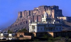Форт Мехрангарх – одна из крупнейших крепостей в Индии. Она располагается в 122 метрах над городом и окружена толстыми стенами. Внутри стен находятся несколько красиво украшенных дворцов. Крепость была построена в XV веке на скалистом холме, но большая часть построек датируется XVII веком. Стены форта достигают 36 метров в высоту и 21 метра в ширину. К дворцам можно попасть через 7 ворот, которые очень значимы с исторической точки зрения. Самыми известными являются «Ворота Победы». На некоторых воротах видны отпечатки ладоней Ранис, принесшей себя в жертву на погребальном костре своего мужа в 1843 году. В форте располагается один из самых хорошо оснащенных музеев в Раджастане, в котором можно посмотреть на королевские паланкины, оружие, костюмы, музыкальные инструменты, мебель, картины и другие ценные предметы. Форт также является излюбленным местом для съемок голливудских фильмов.