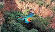 Знаменитая Долина Попугаев расположена в шестидесяти километрах к югу от города Бониту. Это красивое место идеально подойдет для любителей экотуризма и дикой природы. Buraco das Araras буквально переводится как «Яма Попугаев Ара». Это самый настоящий вертикальный провал глубиной более ста двадцати метров, состоящий из ярко-красной песчаной земляной поверхности. Внизу провала находится небольшое озеро, где обитают крокодилы, а также роща, укутанная самыми разными видами лиан и плюща. Но самое главное, ради чего сюда стоит приехать, - это чтобы увидеть собственными глазами знаменитых больших и красочных попугаев ара. Для наблюдения за птичьим царством специально для туристов сооружены две смотровые площадки. Особенно эффектно выглядят групповые полеты попугаев вокруг песчаного провала. Кроме того, в долине можно увидеть таких редких птиц, как красногрудый сокол, бразильский ястребиный орел, королевский дятел и тукан токо.