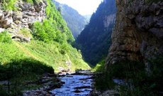 Каньон реки Цице возможно самое красивое и величественное горное ущелье Адыгеи, прекрасный памятник природы, который почти не посещается туристами. Причина этого - достаточная сложность маршрута, требующая соответствующей подготовки. В ущелье не проложено троп, осматривать каньон придется, двигаясь непосредственно по руслу реки. Лучше всего посещать ущелье в конце лета или осенью. когда уровень воды в Цице минимален. Спуститься к каньону лучше всего от приюта Цице или озера Псенодах. В начале пути вам предстоит преодолеть завалы из огромных валунов. перегородивших речное русло, здесь вы увидите первые водопады. Затем вы вступите в сам каньон, гранитные стены которого поднимаются на несколько сот метров. По берега каньона можно увидеть неглубокие гроты, некоторые из которых достигают поистине громадных размеров. Одной из самых интересных достопримечательностей ущелья является огромный снежник, перегородивший русло Цице. Эта естественная плотина из спрессованного льда и снега ежегодно меняет свою форму и размер. Иногда его можно пройти по туннелю, проделанному в нем рекой. Подняться из каньона лучше всего по ущелью Сухая балка. так как нижняя часть ущелья особенно трудна для прохождения и при этом менее живописна.