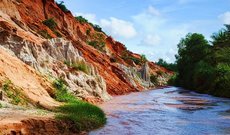 Красный каньон – это удивительное природное творение. Образование каньона в глиняно-песчаных почвах произошло в результате вымывания грунта посредствам частых дождей. Раньше каньон служил руслом полноводной реке, от которой сейчас остался лишь небольшой ручей протяжённостью 2-3 километра. Высокие берега имеют причудливую форму сталагмитов: дожди вытачивают их из известковой породы, лежащей под слоем красного песка. Ручей, который течёт в русле каньона, тоже носит название «Красный», хотя буквально его имя переводится как «ручей феи». Он держит свой путь через бамбуковый лес, вдоль деревень и полей. Глубина у ручья небольшая, так что, если есть желание, вы спокойно можете пройти вброд, намочив только пятки. Кое-где можно подняться наверх по стенам каньона и пройтись вдоль реки по верху. Также на реке можно встретить небольшой водопад.