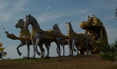 Колесница находится в рыбацком поселке Мурдешвар, в штате Карнатака. Она расположилась в непосредственной близости от самой высокой статуи индуистского бога Шивы.Роскошная колесница запряжена лошадьми, а восседают на ней Арджуна и Кришна. В древнеиндийском эпосе образы этих героев неотделимы. Согласно легендам, Кришна говорил, что Арджуна дороже ему детей и жен своих. Эти два персонажа были не только героями-побратимами, но настоящими родственниками. Арджуна был женат на сестре Кришны Субхарде. Кришна- один из главных Богов в индуизме, Арджуна, в свою очередь, был доблестным воином, воплощением силы и мужества. Во времена войны между кауравами и пандавами, Кришна был возничим колесницы Арджуна, учил его мудрости и высшей философии. Статуя, находящаяся в Мурдешваре отображает именно один из таких исторических моментов. Удивительной красоты колесница порадует всех эстетов и любителей древнеиндийского эпоса.