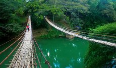 Бамбуковый Висячий Мост – это интересная и популярная у туристов развлекательная достопримечательность. Он перекинут через реку Сипатан в муниципалитете Севилья на острове Бохоль, Филиппины. Изначально мост был построен исключительно из бамбука, связанного веревками. Сегодня веревки заменены на стальные тросы, чтобы обеспечить должный уровень безопасности и устойчивости для туристов. В остальном же покрытие моста все так же сделано из плетеных бамбуковых планок. Часть из них уже сломана от частой эксплуатации, но мост все так же выдерживает вес пешеходов и даже небольших мотоциклов. Переход через мост сопровождается определенной его вибрацией, бамбуковые планки немного прогибаются под ногами, и даже стальные тросы не могут устранить этот эффект. Поэтому при ходьбе через Бамбуковый Висячий Мост человек сталкивается с колебаниями из стороны в сторону и некоторой пружинистостью под ногами. Длина моста составляет 40 метров, с него открывается замечательный вид на реку Сипатан. Сейчас рядом с ним возведен второй такой же, чтобы уменьшить нагрузку на мост и увеличить проходимость туристов и жителей через реку.