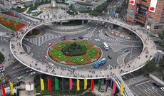 Круглый пешеходный мост Луцзяцзуй был построен в 2010 году в новом деловом районе Пудонг на восточном берегу реки Хуанпу, чтобы разделить потоки транспорта и пешеходов на одноименной площади города. Здесь расположены Шанхайская фондовая биржа, множество бизнес-центров, магазинов и уютных кафе. Ширина моста составляет 7 метров, одновременно до 15 человек могут встать плечом к плечу, чтобы перекрыть мост. Высота моста - около 6 метров. Входы на мост оборудованы эскалаторами и лифтами. Мост сразу стал новой архитектурной достопримечательностью города, благодаря своей неординарной форме и высокой функциональности. С моста открывается живописный вид на небоскребы Шанхая. Очень красива вечерняя подсветка самого моста и небоскребов вокруг него.