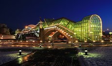 Пешеходный мост Богдана Хмельницкого соединяет Бережковскую и Ростовскую набережные в Москве. Открытие моста состоялось в 2001 году. Часть моста имеет определенную историческую ценность – пролетные конструкции прежде составляли Краснолужский железнодорожный мост, построенный в 1907 году. После закрытия Краснолужского моста в 2000 году данные конструкции были перемещены на новые опоры. С моста открывается великолепный вид на Москву-реку и обе набережные. Для удобства на мосту оборудованы специальные смотровые балкончики, на которые можно попасть по лестнице с улицы или через дверь из крытой части моста. Кстати, во внутренней части моста, прикрытой стеклянным куполом, расположено множество разнообразных магазинчиков и маленьких кафе.