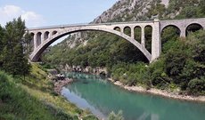 Фото, адрес и описание достопримечательности Мост Солкан в г. Юлийские Альпы (Словения)