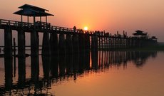 Одним из символом Мьянмы называют знаменитый деревянный мост У Бейн, который целиком сделан из тика (местное дерево) и является самым длинным деревянным мостом в мире. На многих картинках и фотографиях Мьянмы вы можете видеть именно этот мост. Туристы говорят, что уходящая вдаль змейка моста – зрелище необыкновенное. Перекинут тиковый мост через озеро Таунтоме Кэ. Мост У Бейн определенно стал бы объектом всемирного наследия ЮНЕСКО, но увы, по политическим причинам ЮНЕСКО не берет ни один объект в Мьянме под свою охрану и контроль. Однако уникальности моста это не умаляет: он имеет длину 1 200 метров и ведет через озеро к еще одной древней бирманской столице - Амарапуре, на месте которой теперь большой монастырь. Каждый тиковый столб-опора моста пронумерован и является практически национальным достоянием, а сам мост становится наиболее живописным на закате. Закат и мост на его фоне удобнее всего наблюдать с лодки, которых тут множество, как и лодочников, которые за умеренную плату отвезут вас на середину озера, где вид наиболее живописный и впечатляющий.