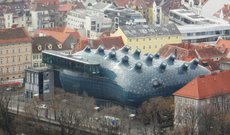 Если вам когда-либо повезет побывать в удивительном австрийском городке Грац, непременно посетите галерею Кунстхаус, которая была открыта в 2003 году в рамках программы «Культурная столица Европы». Проект здания был разработан известными лондонскими архитекторами Питером Куком и Колином Фурнье. Сооружение было возведено в современном архитектурном стиле "блоб", для которого характерны органические, выпуклые формы, поэтому оно отлично контрастирует с окружающей застройкой. Основа здания представляет собою железобетонную внешнюю оболочку, выполненную из пластиковых голубоватых панелей. Фасад галереи выполнен по специальной технологии «BIX», его площадь составляет около 900 квадратных метров. Главной изюминкой сооружения являются различные светящиеся элементы, которыми управляют с помощью компьютера. Без сомнения можно сказать, что фасад является доминирующим элементом архитектурного образа. Он основывается на оригинальных идеях о больших и светящихся поверхностях. «Дружественный инопланетянин», как некоторые называют сооружение, возвышается в центре города Грац среди черепичных крыш и отлично контрастирует со старой Часовой башней. Сооружение стало одним из главных символов города.