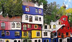 Дом Хундертвассера – это воплощение идеи строительства обычных муниципальных домов нетиповым способом. Сам архитектор Фриденсрайх Хундертвассер считал, что дома, как и люди, должны иметь свои особенности и не быть похожими друг на друга. Поэтому фасад здания представляет собой яркую палитру цветов и беспорядочное расположение окон. В соответствии с принципами экологичности, автор здания использовал при строительстве природные материалы, а также позаимствовал ассиметричные, неправильные природные формы. Полы в доме волнообразные, стены оштукатурены неравномерно, на ступенчатых террасах и даже в окнах хаотично растут кусты и деревца. Все объекты оформлены керамической плиткой. Несмотря на такой буйство красок и форм, дом выглядит очень привлекательно и действительно радует глаз.