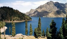 Озеро Тяньчи, расположенное на высоте 200 метров над уровнем моря на склонах хребта Богдо-Ула в 110 километрах к востоку от Урумчи, в народе часто называют "жемчужиной Тибета". Прежде озеро называлось Яочи, что переводится как "нефритовое озеро". В 1783 году появилось современное название, которое означает "Небесное озеро". Озеро Тяньчи сформировалось в результате действия ледника, оно имеет форму полумесяца протяженностью 3,4 км и шириной 1,5 км. Общая площадь озера составляет 4,9 кв. км, максимальная глубина достигает 105 метров. Вода в озере поразительно чиста и прозрачна, а пейзаж по берегам напоминает альпийский - густые хвойные леса в окружении заснеженных горных пиков. Все это добавляет совершенно особой прелести здешним местам. Туристам, приехавшим в район озера Тяньчи, стоит осмотреть несколько главных достопримечательностей: "Шимэнь" (каменные ворота), "Лунтань биюе" (Изумрудный месяц на Драконовом озере), "Скалу, подпирающую небо", скалу "Священная игла", "Снежный пейзаж", "Сосны и пихты", "Утренний туман" и "Летящий водопад". В древности поблизости располагалось множество культовых построек, но до наших дней сохранились лишь руины нескольких монастырей.