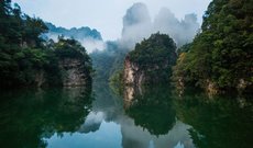 Озеро Баофенг - одна из природных достопримечательностей провинции Хунань и Китая в целом. Оно находится на склоне одноименной горы Баофенг и занимает площадь более 274 гектаров. Водоем вызывает восхищение своей прозрачной водой, а также величественностью окружающих его гор и красотой пейзажа, который они вместе создают. Китайцы уверены, что спокойствие озера дарит благодать, чистоту и умиротворение. Особое удовольствие приносят лодочные прогулки по озеру. Во время такого путешествия можно увидеть, как в воде, словно в гигантском зеркале, отражаются горы и зеленые деревья.