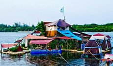 Плавучий остров-дом из бутылок Джойскси в г. Исла Мухерес (о.Женщин)