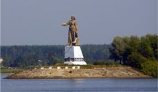 Фигура матери – Волги приветствует всех, кто приезжает в Рыбинск. Монумент установлен в 1953 году на песчаной косе при входе в Рыбинское водохранилище. Скульптор С.Шапошников, В.Малашкина.