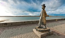 Двухметровый бронзовый памятник А. П. Чехову установили в 2004 году на набережной в честь 400-летия города Томска. Автором памятника является известный скульптор Леонтий Усов. Монумент был возведен за счет народных средств. Писатель изображен в карикатурном и в гротескном виде: в нелепой шляпе, в пальто, перекошенных набок очках, а также босиком и с довольно непропорциональными большими ногами. За спиной у него размещен зонт, а внизу на постаменте виднеется надпись: "Антон Павлович в Томске глазами пьяного мужика, лежащего в канаве и не читавшего «Каштанку»"! Таким образом, город как бы «отомстил» Чехову, который, пробыв здесь неделю, проездом на Сахалин в 1890 году, отозвался о нем довольно нелестным образом. Мнения об этом памятнике расходятся. Одни говорят, что он оскорбляет память великого Чехова и требуют его снести, а для других он выступает популярной городской достопримечательностью: гости и местные горожане Томска приходят к нему сфотографироваться, а вот студенты считают, что если потереть нос скульптуры перед сдачей экзамена, то непременно повезет!