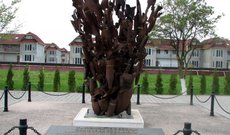 На невысоком постаменте - оригинальный по своему решению и материалу памятник "Взрыв". Он выполнен из крупных осколков и целых болванок снарядов, мин и авиабомб. Его вес-1250 кг, столько, сколько этого смертоносного металла обрушил враг на каждого советского воина за 225 дней героической обороны Малой земли.