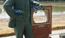 Памятник изобретателю телевидения русскому и американскому инжинеру Владимиру Зворыкину открыли в Москве в день 125-летия изобретателя. "В.Зворыкин -изобрететель телевидения" работа скульптора Сергея Горяева и архитектора Алексея Тихонова установлена возле Останкинского пруда рядом с телецентром.