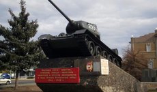 Памятник советским воинам-танкистам. Танк Т-34 № 237 был изготовлен на средства колхозника Якова Федоровича Шульги и подарен сыну Ивану Кисенко. В 1971 г. танк был направлен в Ворошиловград и установлен на постаменте. На правой стороне постамента мемориальная доска с текстом 'Этот танк участвовал в жестоких битвах против немецко-фашистских захватчиков на Ворошиловградской земле и с боями прошел дорогами войны, освобождая от фашистов Румынию, Болгарию, Югославию, Чехословакию'. Луганск, Острая Могила