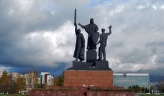 Памятник героям фронта и тыла быд открыт в день празднования 40-летия Великой Победы (9 мая 1985 года). Авторы композиции скульптор, лауреат Государственной премии СССР В.М. Клыков, заслуженный архитектор РСФСР Р.И. Серджиев, архитектор В.И. Снегирев, конструктор Б.С. Гурвич. Памятник олицетворяет собой единство всех людей во время борьбы с фашистскими захватчиками, точнее три составляющие, сделавшие победу реальностью. Войн, объединивший в своем лице всех советских солдат ушедших на фронт, смотрит на запад, навстречу врагу, высоко подняв свой меч. Рабочий ориентирован на восток, в с сторону тыла, и как бы призывает всех людей на свершение трудового подвига. Центральной фигурой монумента является Родина-Мать, благословляющая сынов своих на подвиги. Творение скульптора Вячеслава Клыкова стало одной из визитных карточек города. В памятные даты к нему возлагаются живые цветы и венки.
