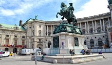 Памятник Евгению Савойскому был открыт в 1865 году, он очень популярен среди туристов. Евгений Савойский был полководец Римской Империи. Его величие и мужество глубоко впечатляет туристов из разных стран. В Хофбурге этот памятник считается одним из первых возведенных памятников человека. Антон Доминик Фернкорн изготавливал на памятнике лошадь и всадника. После чего он получил апоплексический удар, и работу памятника заканчивали его ученики, но памятник так и не был закончен, осталась лишь только одна память об этих событиях прошлых лет. На монументе находится надпись «Славный победитель врагов австрийских».