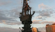 Памятник «В ознаменование 300-летия российского флота» расположен на стрелке Москвы-реки на Крымской набережной. Общая высота памятника 98 метров самый высокий в России и один из самых высоких скульптурных памятников в мире. Монумент представляет собой столб на гранитном основании, который венчает бронзовый гигантский парусник, на котором установлена фигура Петра I, а в основание постамента вмонтированы фонтаны. Автор памятника - Зураб Церетели. Строительство осуществлялось в 1996-1997 годах.