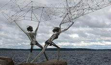 Петрозаводская набережная на Онежском озере популярное место отдыха у горожан. Вдоль берега выложена каменная мостовая, на которой расположилась целая галерея скульптур. Возглавляет список памятник «Рыбаки». Придумал эту композицию американский скульптор Рафаэль Консуэгра, который лично участвовал в ее сборке. Сварочные работы проводились на местном заводе. Скульптура представляет собой металлическую конструкцию в виде двух рыбаков, закидывающих невод в море, и олицетворяют они совместный труд двух народов – американского и русского. Визуально понять кто из рыбаков русский, а кто американец невозможно, так как фигуры весьма схематичны и сварены из металлических прутьев. Первое время местные жители считали, что в руках у рыбаков совсем не рыболовная сеть, а шпионская антенна загнивающего Запада. Горожане называют скульптуру «Узники Бухенвальда».