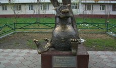 В Томске рядом с компанией Томлесстрой на улице Шевченко установлен памятник волку из мультфильма «Жил был пес». Авторами скульптуры выступили литейщик Максим Петров и консультант-художник Леонтий Андреевич Усов, который выполнили всем известную сцену «Щас спою!». Финансовую поддержку в реализации этого проекта взяла на себя компания Томлесстрой, которая решила подарить городу такой необычный монумент на четырехсотый юбилей города. Установленный в 2005 году, он стал одно из самых необычных и наиболее запоминающихся достопримечательностей города. Авторы идеи выбрали образ волка из всем известного мультфильма как наиболее яркий пример состояния счастья. Поэтому памятник волку так и называется – Памятник Счастью. Если вы будете в Томске, обязательно погладьте волка по круглому отполированному животу. От прикосновения памятник говорит одну из восьми самых популярных фраз голосом Армена Борисовича Джигарханяна.