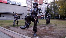 В Барнауле есть множество интересных памятников, посвященных разным историческим событиям города и страны. Но, возможно, самый трогательный и необычный находится недалеко от вокзала за мемориалом Победы у кинотеатра Мир. Не узнать уморительно смешного паренька в нелепой шляпе-котелке невозможно, ведь его образ бессловесного комедианта известен на весь мир. У кинотеатра на небольшой свободной площадке скульптор Эдуард Добровольский изобразил сцену из известного фильма «Цирк». Здесь Чарли Чаплин во всю удирает от злого полицейского с дубинкой, а рядом стоит дама и, повелительно вскинув руку, все снимает это на камеру. Этот памятник единственный в Барнауле и во всей Сибири памятник известному комику. Недавно рядом с кинотеатром недавно появился ночной клуб и бар "Чаплин".
