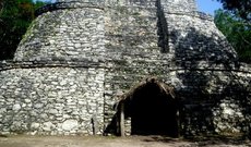 Пирамида «Перекресток», или по-индейски Xaibe – один из наиболее интересных монументов археологического комплекса древнего майянского города Коба, расположенный между полем для игры в мяч и пирамидой Нооч Муль. У Xaibe есть и несколько других названий – «Перекресток», «Овальный храм», «Смотровая башня», «Астрономическая обсерватория». Пирамида Xaibe представляет собой овальное в основании конусообразное четырехъярусное сооружение из серого камня, стоящее на перекрестке четырех дорог - сакбе, имевших не только транспортное, но и религиозное значение в древнеиндейской культуре. Одна из сакбе, идущая от Xaibe к Чичен-Итце, является самой длинной майянской дорогой - ее протяженность – около 100 километров, - и одной из древнейших. Сакбе тщательно очищались от деревьев и были вымощены белым известняком, что создавало отличную видимость вдоль них даже ночью. Отсюда другое название Xaibe – «Смотровая башня». Об этом же свидетельствуют и две каменные лестницы, ведущие на вершину пирамиды. Название «Астрономическая обсерватория» предполагает, что с вершины Xaibe майя наблюдали не только за окрестностями, но и за светилами, а название «Овальный храм» указывает на религиозное значение монумента, которое несомненно подтверждает и его расположение на перекрестке четырех сакбе.