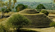 Пирамиды Guachimontones являются одним из самых важных археологических памятников Мексики. Согласно исследованиям, предполагается, что комплекс пирамид развивался в период с 300 по 900 годы до нашей эры. Они расположены на вершине холма и представляют собой круговые ступенчатые пирамиды, которые когда-то были окружены церемониальными зданиями. Высотой 18 метров, они имеют до 13 высоких ступеней, ведущих на верхний уровень, который увенчан еще 4 небольшими, но более высокими ступенями. Считается, что они служили местом для проведения церемоний в честь бога ветров - Эхекатлема.