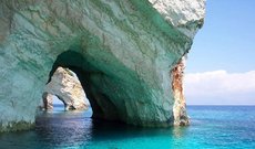 Голубые пещеры, или, как еще их называют, Голубые гроты, представляют собой уникальное зрелище. Белые породы, образующие эти пещеры, создают изумительный пейзаж. Кроме красивых арок, естественно образовавшихся из-за эрозии и украшающих местность, Голубые Пещеры известны благодаря невероятно красивому цвету кристально чистой воды. Ярко-лазурной она становится из-за преломляющихся особенным образом солнечных лучей. Особенно насыщенный цвет воды можно наблюдать утром, когда солнечный свет наиболее ярок. Добраться до Голубых пещер можно на катере, лодке или другом водном транспорте из курорта Айос Николас - пожалуй, это самое близкое место к острову Закинтос, на северном мысе которого и находятся Голубые Пещеры.