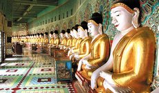 Пещеры Умин-Тоунзе располагаются на холме Сагайн в Мьянме и являются популярным туристическим объектом. На самом деле, в данном случае, пещеры всего лишь название, потому что по сути своей Умин-Тоунзе – это крытые галереи, которые вмещают в себя 45 различных статуй Будды. Местные гиды предпочитают называть это сооружение «рукотворные пещеры», а его название переводится как «тридцать пещерных пагод». В действительности храм представляет собой одну длинную галерею, построенную вдоль холма, которая имеет тридцать углубленных входов, создающих иллюзию того, что холм пронизан пещерами. Сооружение разукрашено золотым орнаментом как снаружи, так и изнутри, что делает его очень нарядным и праздничным. Внутри храма Вы увидите 45 статуй Будды, расположенных по широкой дуге. Благоприятное число 45 соответствует возрасту, в котором Сиддхартха Гаутама достиг просветления и стал Буддой.