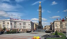 Лаконичная и выразительная площадь Победы расположена в центре Минска. Ее главное украшение - гранитный обелиск, увенчанный трехмерным изображением ордена Победы. Это памятник в честь победы над фашистской Германией, в память всех участников героической битвы за Отчизну. Ансамбль завершают здания, построенные в 50-х годах прошлого века. Памятник был возведен в 1954 году в память о советских воинах и белорусских партизанах, погибших за Белоруссию. В коллектив скульпторов входили: З. Азгур, А. Бембель, С. Селиханов. Форма обелиска, облицованного серым гранитом, как древнего символа стремления к небу не случайна. Обелиск на площади - это классический граненый монумент на большом ступенчатом постаменте. На стеле специальным образом расположены рельефные пояски с белорусским орнаментом. У основания обелиска - священный меч Победы. В 1961 году у подножия памятника зажегся вечный огонь. Позже, в 1985 году в подземном переходе на площади Победы открылся мемориальный зал, посвященный Героям Советского Союза, погибших, защищая Белоруссию. На специальных мемориальных табличках перечислены имена 566 Героев. Также здесь имеются специальные капсулы с землей из других городов-героев. В наши дни площадь является местом, куда приходят почтить память погибших во время войны.